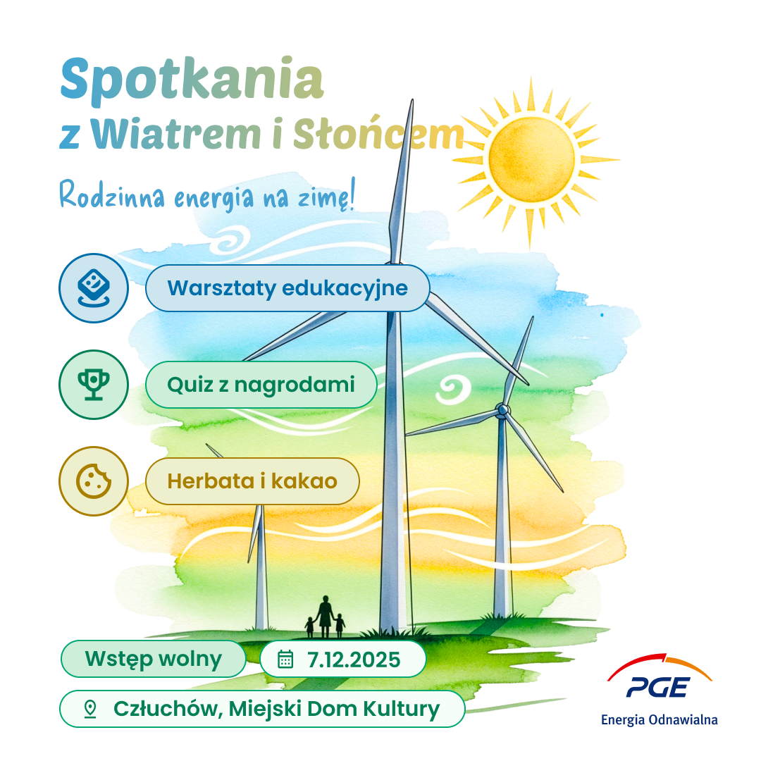 - Zależy nam, aby poprzez takie inicjatywy jak "Spotkania z Wiatrem i Słońcem" pokazywać, że wiedza o energii odnawialnej może być przekazywana w sposób ciekawy i dostępny dla każdego. To doskonała okazja, aby całe rodziny mogły wspólnie odkrywać świat, który nas otacza, i zrozumieć, jak ważną rolę pełnią w nim wiatr i słońce. Cieszymy się, że możemy być częścią tak pozytywnej i potrzebnej inicjatywy” – mówi Krzysztof Müller, Prezes Zarządu PGE Energia Odnawialna.