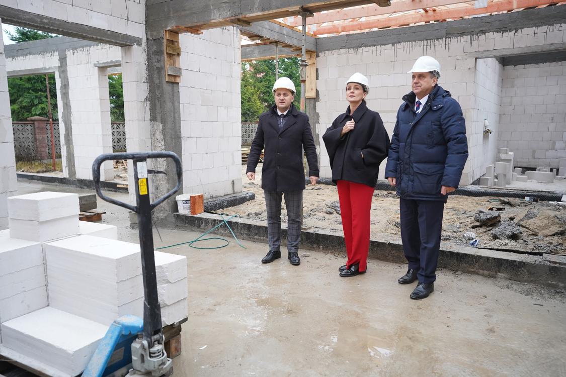 Pierwszym zadaniem oglądanym przez Beatę Rutkiewicz była budowa Centrum Opiekuńczo – Mieszkalnego. Burmistrz Ryszard Szybajło wraz ze swoim zastępcą – Tomaszem Kowalczykiem, przedstawili jej stan zaawansowania prac. Kolejnym miejscem odwiedzonym przez delegację była budowa obiektów socjalnych przy ulicy Słowackiego.