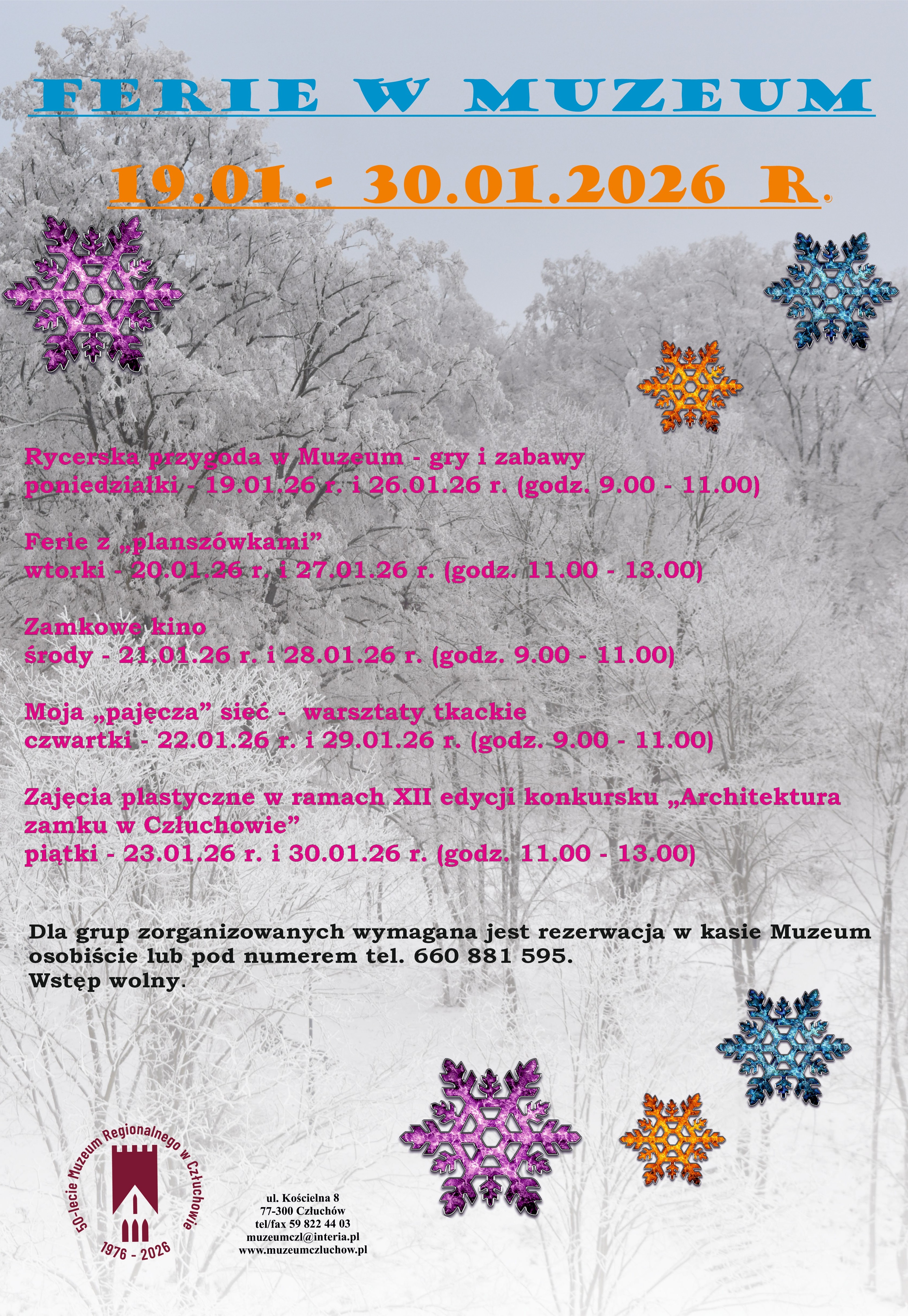 W człuchowskim muzeum organizowane będą m.in. warsztaty tkackie, zajęcia plastyczne oraz gry i zabawy pod hasłem „Rycerska przygoda w Muzeum”. Będzie też zamkowe kino i ferie z planszówkami.