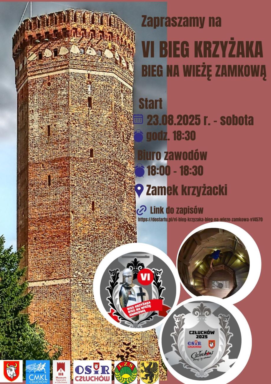 Bieg na wieżę zamkową [0] 23.08.2025 r. Miejsce imprezy start Podzamcze Organizator Ośrodek Sportu i Rekreacji w Człuchowie